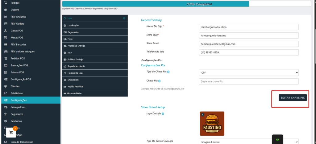 Pronto! A partir de agora, toda vez que um cliente fizer um pedido, ele verá sua chave Pix claramente exibida — sem complicações.