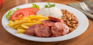 Feijão, arroz, calabresa e salada